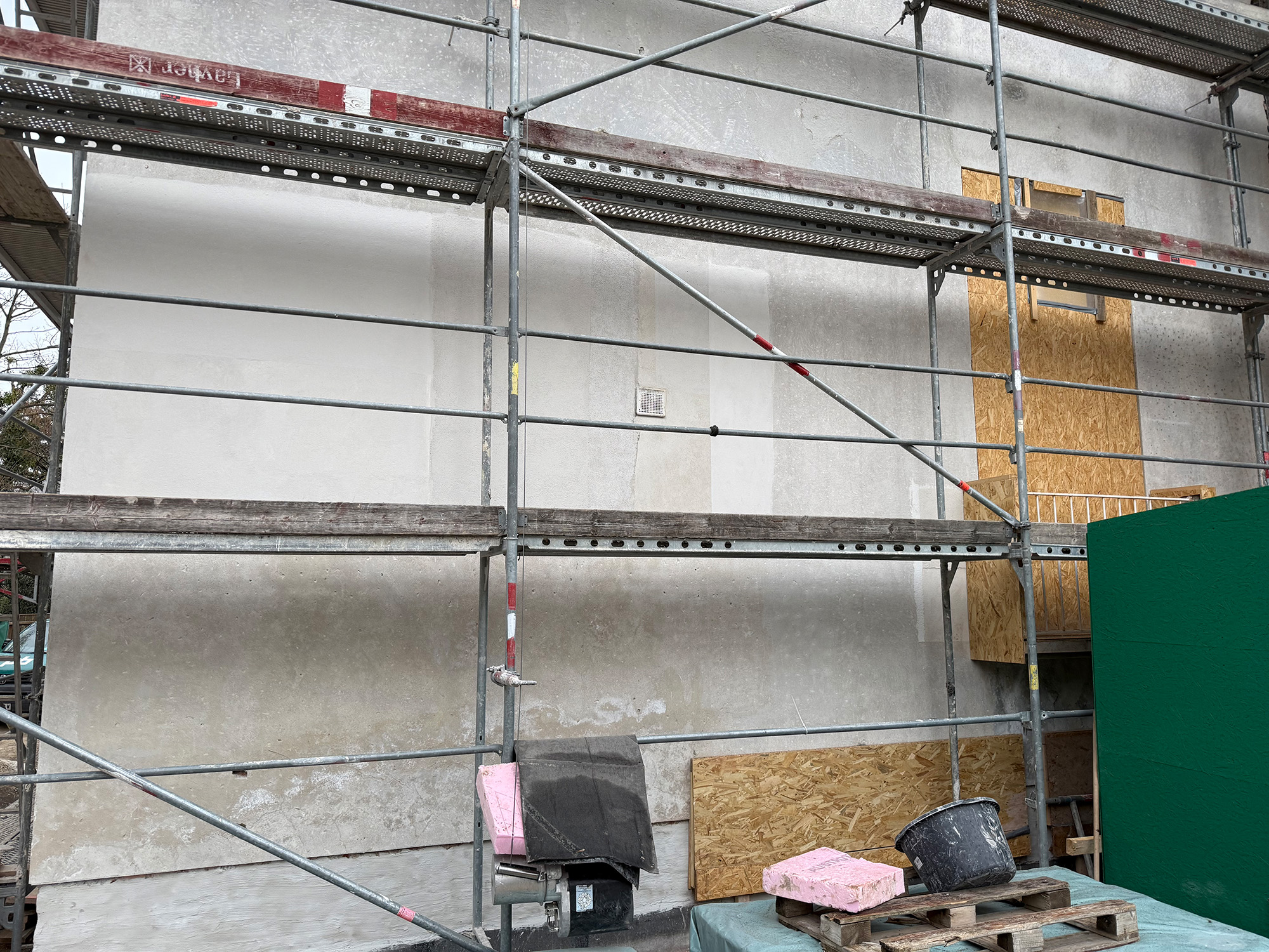 Eines der heikelsten Themen bei der Sanierung war der Fassadenputz, ist es doch die erste und größte Fläche, die man vom Haus sieht.