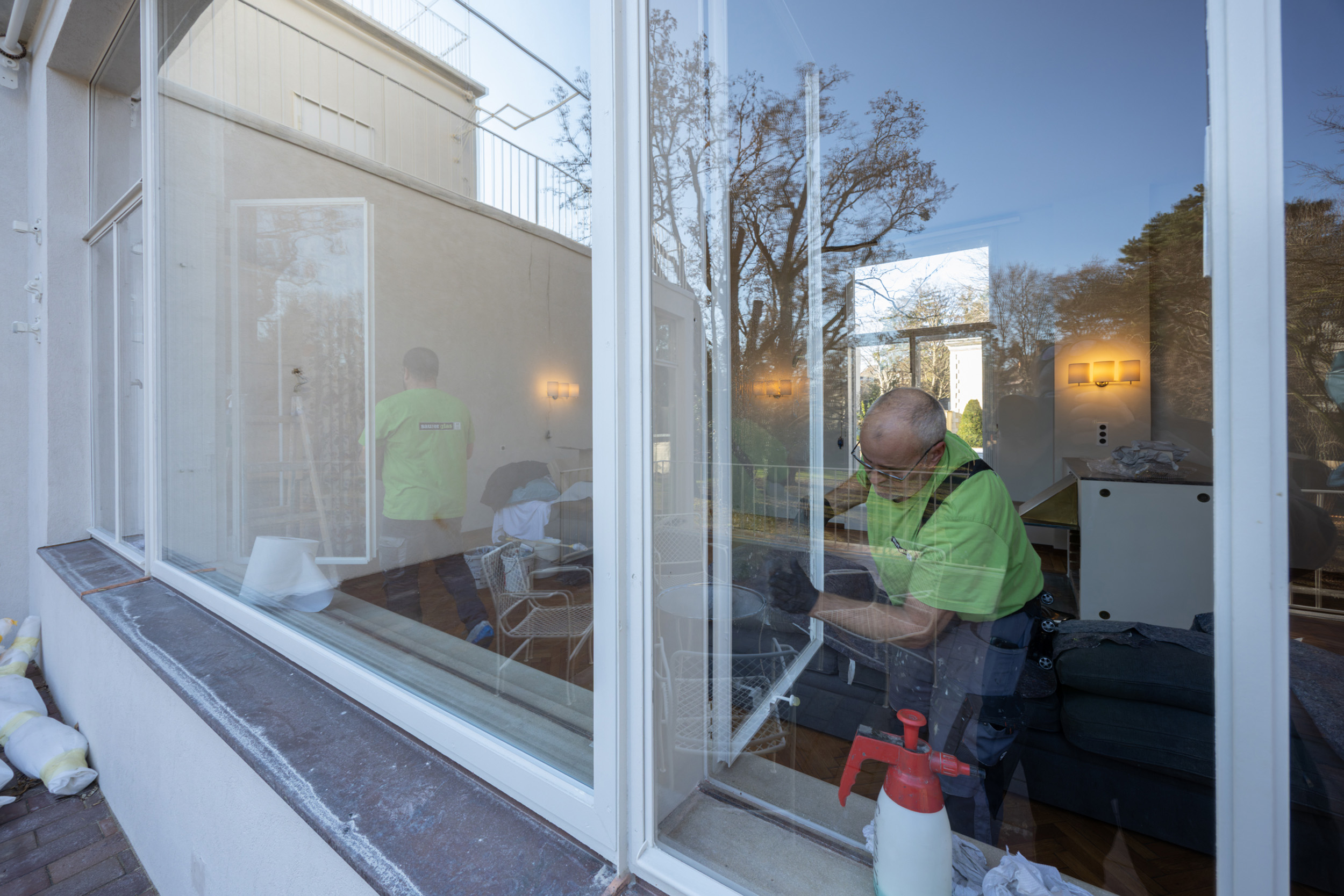 Am 10. Juli 2025 – Einbau der großen Glasscheiben